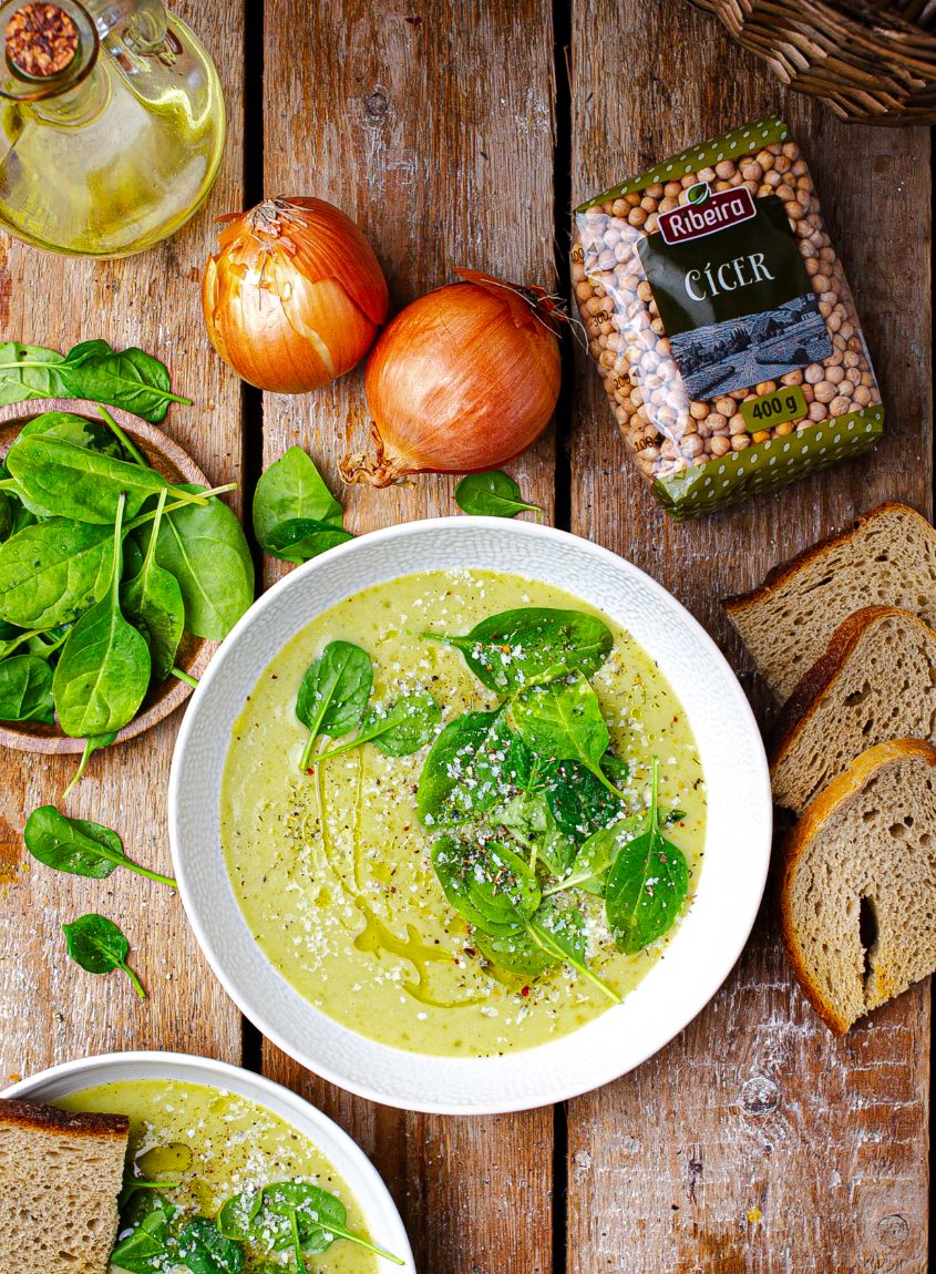 Potom pridáme zeleninový vývar. Varíme 15 až 20 minút, kým brokolica úplne nezmäkne. Potom pridáme cícer, baby špenát a nastrúhaný muškátový oriešok. Pár minút povaríme a ochutíme soľou a čiernym korením podľa chuti.